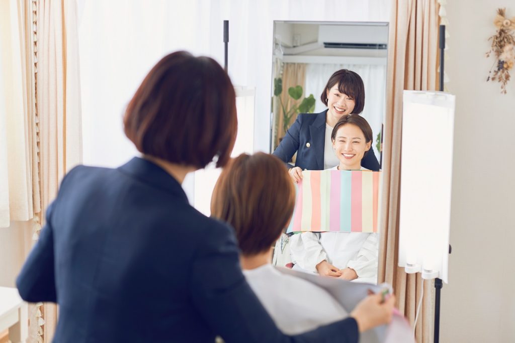 カラーサロンMEIBIは、10年以上にわたり1,500名以上の診断を行ってきた経験から、“似合う”を超えた色の活かし方をご提案しています。